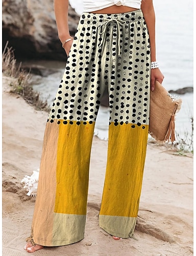 Damen Weites Bein Chinos Streetwear Lässig Volle Länge Mittlere Taillenlinie Tupfen Netz Elastischer Bund Bequem Unelastisch Täglich Outdoor Straße Schwarz Sommer Frühling Lässiger Schnitt