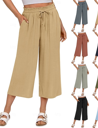 Damen Caprihose Weites Bein Hose Freizeithose Urlaub Mode Streetwear Knöchellang Hohe Taille Einfach Elastischer Bund Bequem Atmungsaktiv Unelastisch Täglich Urlaub Straße Schwarz Khaki Sommer