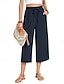 Damen Hose aus Baumwollleinen Hose Sommerhose Baggy-Hosen Urlaub Basic Wadenlang Hohe Taille Einfach Kordelzug Tasche Elastischer Bund Komfort Weich Atmungsaktiv Dehnbar Strand Ferien Blau