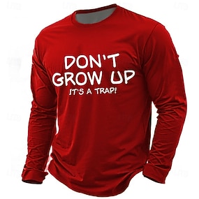 Männer Kurzarm rotes Lustiges Grafik T-Shirt Werde nicht erwachsen es ist eine Falle Lebensstil Humor