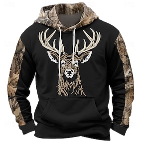 Herren Tarnung Hirsch Pullover Sweatshirt Sweatshirt Stehkragen Täglich Druck Urlaub Reise Streetwear Reißverschluss Herbst Winter