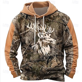 Herren Hirsch Pullover 3D Jagd Langarm Rundhalsausschnitt Outdoor Sport im Freien Orange Rundhalsausschnitt 3D-Druck Winter Frühling & Herbst Designer S M L XL XXL XXXL