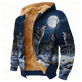 Herren MOON Wolf Pullover 3D Vintage-Retro Langarm Stehkragen Outdoor Arbeit Geschenk Blau Blau 1 Blau 3# Blau 2# Reißverschluss Herbst Winter Designer S M L XL XXL XXXL