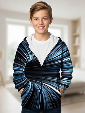 Jungen 3D Grafik Geometrisch Optische Täuschung Kapuzensweatshirt Langarm Frühling Herbst Mode Streetwear Kinder 4-12 Jahre Mit Kapuze Outdoor Lässig Täglich Normale Passform