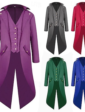 Vintage Punk Gothic Mittelalterlicher Mantel Smoking-Frack Vampir Pestdoktor Plus Size Unifarbene Festkleidung Männer Ebenezer Scrooge Elf Steampunk Erwachsenenmantel Weihnachten