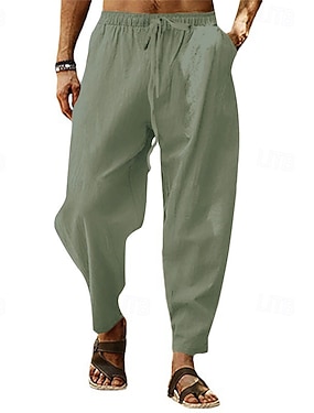Herren Leinenhose Hose Hosen Sommerhosen Pumphose Strandhose Tasche Kordelzug Elastische Taille Glatt Leichtgewichtig Knöchellänge Yoga Täglich Modisch Brautkleider schlicht Lockere Passform Meerblau