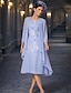 Kleid Kleid-Sets Tee-Länge Kleid für Hochzeitsgäste Brautmutterkleid Dreiviertelarm Hoher Ausschnitt Juwelenhals Elegant Vintage Formell Hochzeitsgast Stretchstoff mit Spitze Perlen