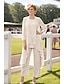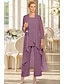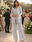 Zweiteilig Overall Hosenanzug Bodenlang Brautmutterkleid Halbarm Rundausschnitt Elegant Vintage Einfach Hochzeitsgast Ferien Formeller Abend Chiffon mit Paillette