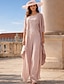 Overall Hosenanzug Bodenlang Brautmutterkleid Dreiviertelarm U-Boot-Ausschnitt Elegant Minimalistisch Lässig Formell Hochzeitsgast Chiffon Spitze mit Spitze