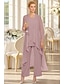 Zweiteilig Schlauchkleid Tee-Länge Kleid für Hochzeitsgäste Brautmutterkleid Ärmellos Juwelenhals Elegant Übergröße Hochzeitsgast Formeller Abend Chiffon Mit Schal mit Schärpe / Band Falten