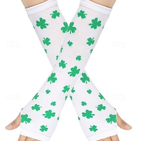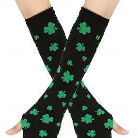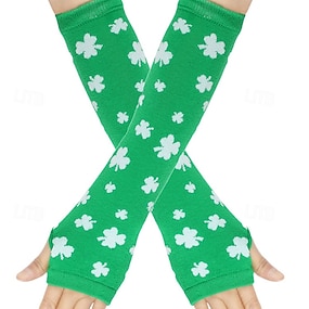 St. Patrick's Day Socke für Damen &Armstulpen-Set, 4-teiliges Set aus kniehohen Socken mit Kleeblattmuster und fingerlosen Handschuhen, festliche Accessoires in Irischgrün für Damen &Mädchen, perfekt