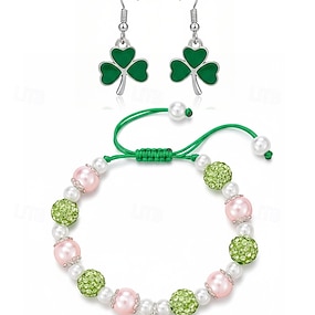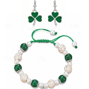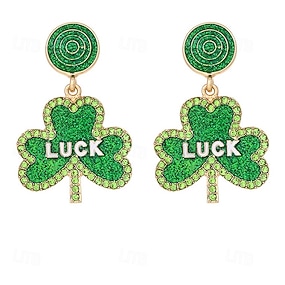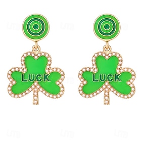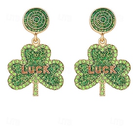 Damenohrringe aus einer Legierung mit grünem Kristall-Kleeblatt-Design, perfekt für den St. Patrick's Day und alltägliche Feiern, elegant und festlich.