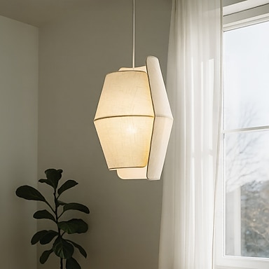 Moderne Pendelleuchte mit Wellenschirm (40/60 cm) und beigefarbenem Leinenstoffschirm in einzigartigem Rüschendesign. Geeignet für Esszimmer, Schlafzimmer und Wohnzimmer. 110–240 V.