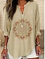 Damen Hemd Tunika Druck Blumen Grafik Vintage Täglich Stilvoll Langarm V Ausschnitt Normale Oberteile Täglich Ferien Gelb Khaki Sommer Frühling
