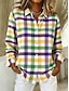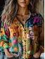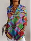 Damen Hemd Patchwork Knöpfe Druck Grafik Geometrisch Lässig Boho Langarm Hemdkragen Normale Oberteile Täglich Ausgehen Party-Outfits Regenbogen Frühling, Herbst, Winter, Sommer