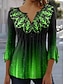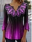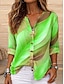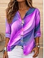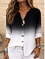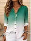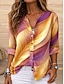 Damen Hemd Tunika Sommeroberteile Knöpfe Ombre Grafik Abstrakt Urlaub Täglich Dreiviertelarm V Ausschnitt Lange Oberteile Täglich Ferien Ausgehen Gelb Purpur Grün Sommer Frühling