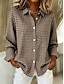 Damen Hemd Bluse Knöpfe Druck Grafik Geometrisch Karomuster Vintage Tropisch Täglich Langarm Hemdkragen Crop Tops Täglich Schwarz Khaki Dunkelgray Sommer Frühling