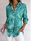 Damen Hemd Druck Blumen Blatt Vintage Stilvoll Lässig Langarm Hemdkragen Lange Oberteile Blau Rosa Grün Sommer Frühling