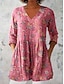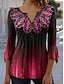 Damenbluse V-Ausschnitt Geschichtete Rüsche Ärmel Tops Floral Grafik Paisley Bohemia Vintage Täglich 3/4 Arm Reguläre Tops Tägliche Urlaubsbekleidung Druck Schwarz Pink Lila Violett Beige Sommer