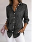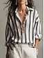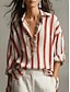 Damen Bluse Hemd aus Leinenimitat Knöpfe Druck Gestreift Stilvoll Lässig Langarm Hemdkragen Normale Oberteile Täglich Schwarz Rote Braun Sommer Frühling Herbst