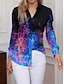 Damen Hemd Durchgeknöpft Hemd Freizeithemd Strandhemd Druck Grafik Stilvoll Klassisch Lässig Langarm Hemdkragen Normale Oberteile Täglich Ferien Ausgehen Blau Schwarz Purpur Sommer Frühling Herbst