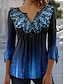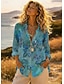 Damen Bluse Druck Blumen Ethnisch Retro Vintage Langarm V Ausschnitt Normale Oberteile Täglich Ferien Blau Königsblau Sommer Frühling Herbst