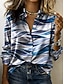 Damen Hemd Satinhemd Druck Marmor Urlaub Mode Täglich Langarm Hemdkragen Normale Oberteile Täglich Ferien Ausgehen Blau Sommer Frühling Herbst