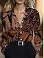 Damen Hemd Freizeithemd Sommeroberteile Druck Grafik Leopard Elegant Bohemien Urlaub Langarm V Ausschnitt Normale Oberteile Täglich Outdoor Streetwear Rosa Braun Sommer Frühling Herbst