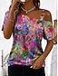 Damen T Shirt T-Shirt Druck Asymmetrisch Grafik Abstrakt Vintage Mode Stilvoll Kurzarm Ein-Schulter Schulterfrei Asymmetrischer Ausschnitt Normale Oberteile Täglich Ausgehen Wochenende Blau Fuchsie