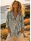 Damen Hemd Tunika Druck Blumen Grafik Bohemien Täglich Stilvoll Langarm V Ausschnitt Normale Oberteile Täglich Ferien Grau Sommer Frühling