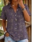 Damen Hemd Leinenähnlich Atmungsaktiv Leicht Knopfverschluß Tunika Hemd Kragen Lange Ärmel Floral Grafik Legere Reguläre Oberteile Arbeit Täglicher Druck Blau Beige Frühling Herbst Winter