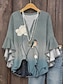 Damen Hemd Leinenähnlich Atmungsaktiv Leicht Knopfverschluß Tunika Hemd Kragen Lange Ärmel Grafik Feder Täglich Stilvoll Lange Oberteile Täglicher Urlaub Druck Grün Frühling