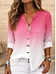 Damen Hemd Tunika Sommeroberteile Knöpfe Ombre Grafik Urlaub Vintage Täglich Langarm V Ausschnitt Normale Oberteile Täglich Ferien Ausgehen Schwarz Rosa Grün Sommer Frühling