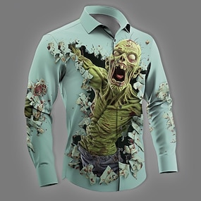 Herren Zombies Horror Mumie Hemd Knopfhemd Langarm Dunkler Gothic-Stil Ferien Streetwear Frühling Herbst Umlegekragen 3D-Druck Hemden mit Kragen Hellgrün Blau Purpur Grün