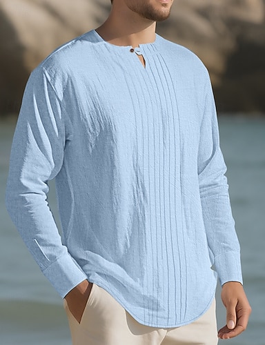 Herren Hemd leinenhemd Popover-Shirt Sommerhemd Strandbekleidung Glatt Casual Täglich Schwarz Weiß Leicht Blau Langarm Kragen Frühling Sommer Bekleidung