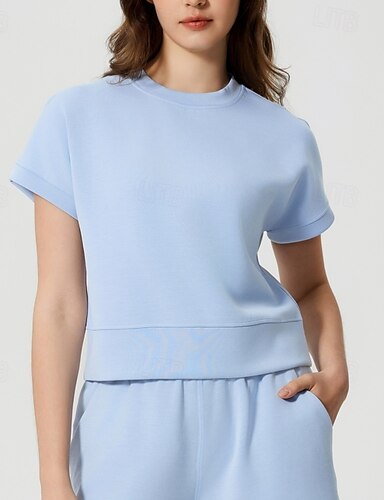 Damen Einfarbig Sportshirt Tennis Shirt Tennis-T-Shirt Sport Top Kurzarm Schnelltrocknend Atmungsaktiv Tennis Pickleball Laufen Rundhalsausschnitt T-Shirt Blau Tennisbekleidung