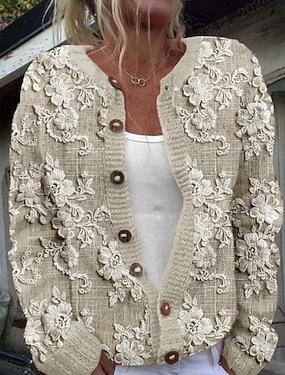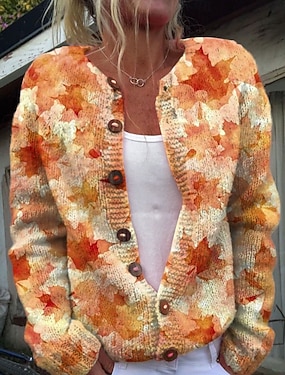 Damen Strickjacke Pullover Mit Wabenstruktur Knopfleiste Rundhalsausschnitt Langarm Leicht Damen Mode Alltag Lässig Blumengrafik Knopfprint Strick Outdoor Alltag Date Pink Orange Herbst Winter
