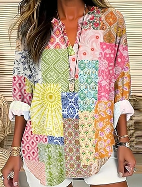Damen Bluse Tunika Spitze Einsätze V-Ausschnitt Langarm Grafisch Paisley Pflanzen Rundhals Normal Tops Täglicher Ausgehen Wochenend Druck Spitze Patchwork Schwarz Frühling Herbst Vorsaison