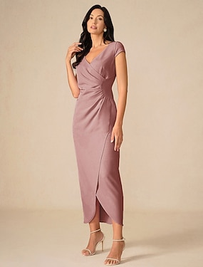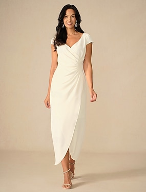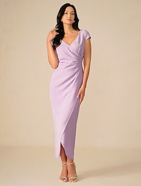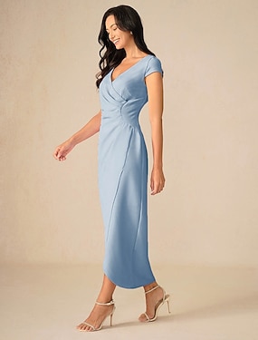 Damen Teelänge Wickelkleid Elegant Party Geburtstag Urlaub Hochzeit Hochzeitsgast Gerafft Normale Passform Einfarbig Kurzarm V Ausschnitt Salbeigrün