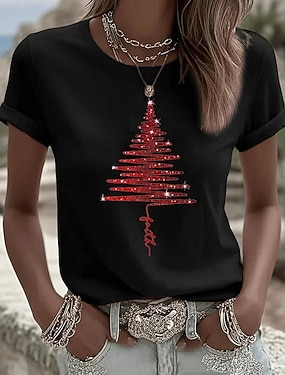 Weihnachten Damen Pullover Sweatshirt Grafik Leger Lange Ärmel Rundhalsausschnitt Reguläre Oberteile Straße Alltagsmode Leger Schwarz Weiß Hellgrün Rot Herbst Winter
