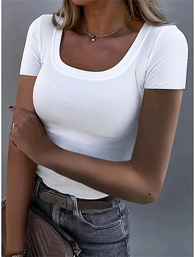 Damen T Shirt T-Shirt Einfach Mode Stilvoll Klassisch Kurzarm Schulterfrei Normale Oberteile Täglich Ausgehen Wochenende Blau Schwarz Weiß Rosa Aprikose Sommer Frühling