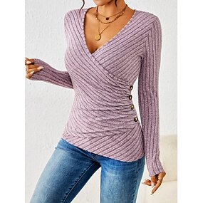 Damen Rippstricktops T Shirt Eng anliegender Top Tunika Einfarbig Stilvoll Sexy Lässig Langarm Henley Normale Oberteile Täglich Ausgehen Wochenende Schwarz Weiß Rosa Wein Grün Frühling Herbst