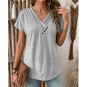 Damen Sommeroberteile Gerafft Knöpfe Stilvoll Klassisch Kurzarm V Ausschnitt Normale Oberteile Lässig Täglich Urlaubskleidung Schwarz Weiß Rosa Rote Königsblau Sommer Frühling