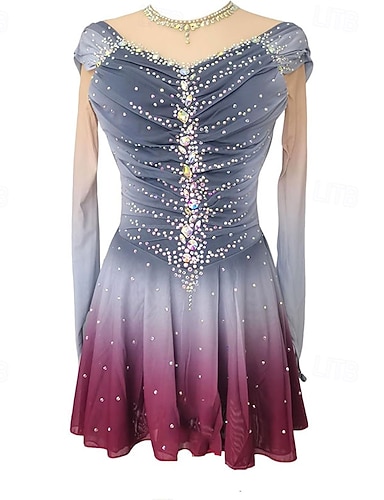 Eiskunstlaufkleid Damen Mädchen Eislaufen Kleid Hyazinth Grau Asymmetrischer Saum Netzstoff Hohe Elastizität Training Wettbewerb Eiskunstlaufkleidung Klassisch Kristall / Strass Langarm Eislaufen