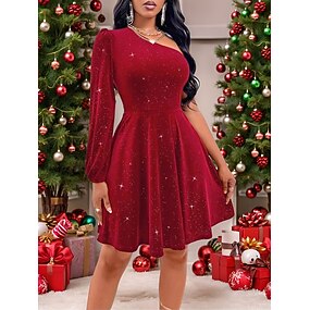 Damen Samt Mini Kleid Sheath Kleid A-Linie Kleid Off-Shoulder Kleid Rückenfreies Kleid Elegant Party Geburtstag Hochzeitsfeier Hochzeitsgast Einfarbig Langarm Eine Schulter Kalt