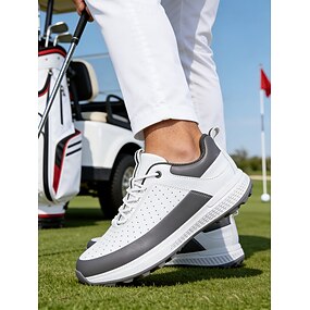 Weiße und graue Golfschuhe für Herren, leichtes, atmungsaktives Design, stoßdämpfende Sohle, sportlicher Stil für Golfspieler