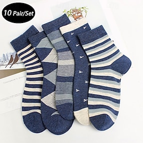 Herren 10 Paare Mehrfachpackungen Socken Laufsocken Freizeitsocken Blau Farbe Gestreift Urlaub Sport & Outdoor Täglich Basic Mittel Frühling Herbst Mode Lässig