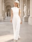 Strandhochzeit Halle Lässige Hochzeitskleider Jumpsuits Illusion Hals Langarm Bodenlang Chiffon Brautkleider Mit Applikationen