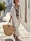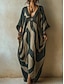 Damen Maxikleid Sommerkleid A Linie Kleid Urlaub Lässig Boho Strand Ausgehen Lässiger Schnitt Grafik Geometrisch Stammes Langarm V Ausschnitt Marineblau Weiß Grün Meer Grün Sommer Frühling