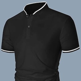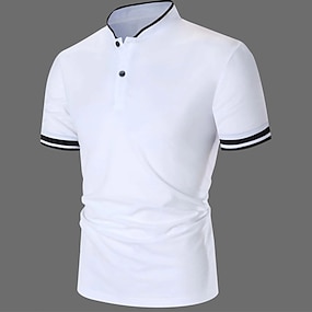 Herren Poloshirt Kragenlose Golfshirts Casual Festtage Ständer Kurzarm Modisch Basic Glatt Taste Sommer Regular Fit Schwarz Weiß Burgunderrot Poloshirt